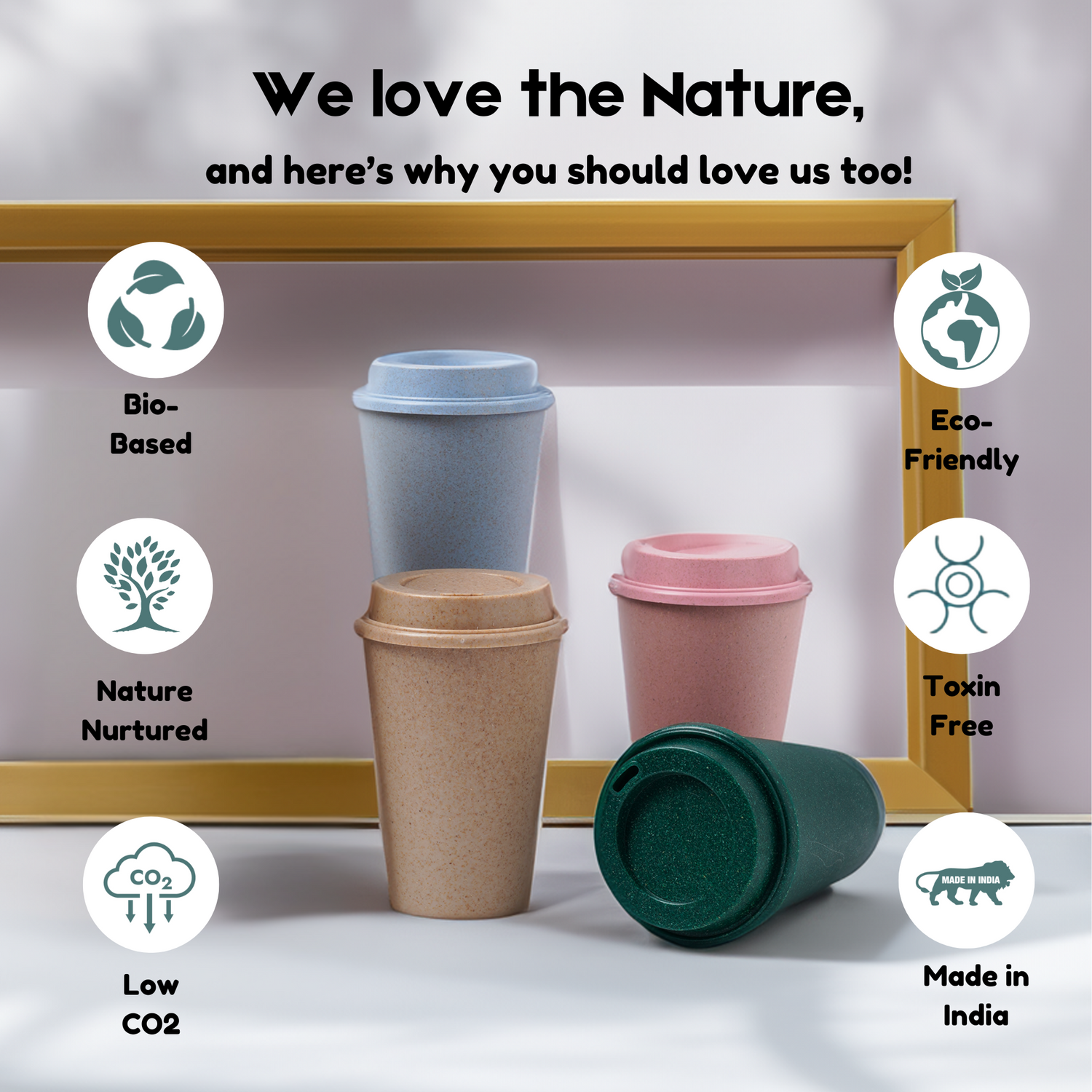 EARTH FRIENDLY : Each Sipper is developed using our proprietary bio-composite material, engineered from responsibly sourced crop residues. By choosing our mugs, you help support rural communities, empowering farmers and local manufacturing units.