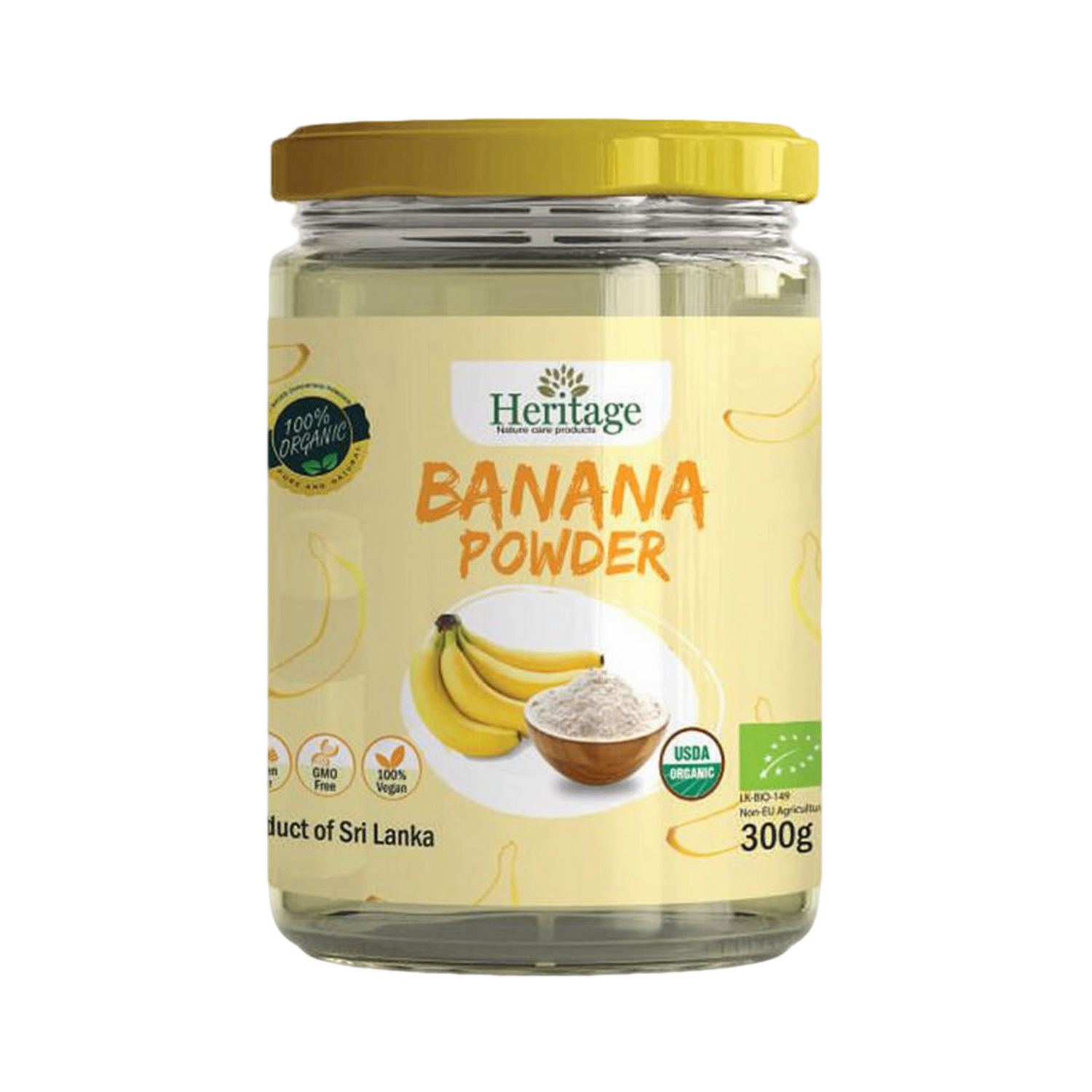 Heritage Organic Banana Powder is a premium USDA-certified organic product crafted from 100% pure green bananas.