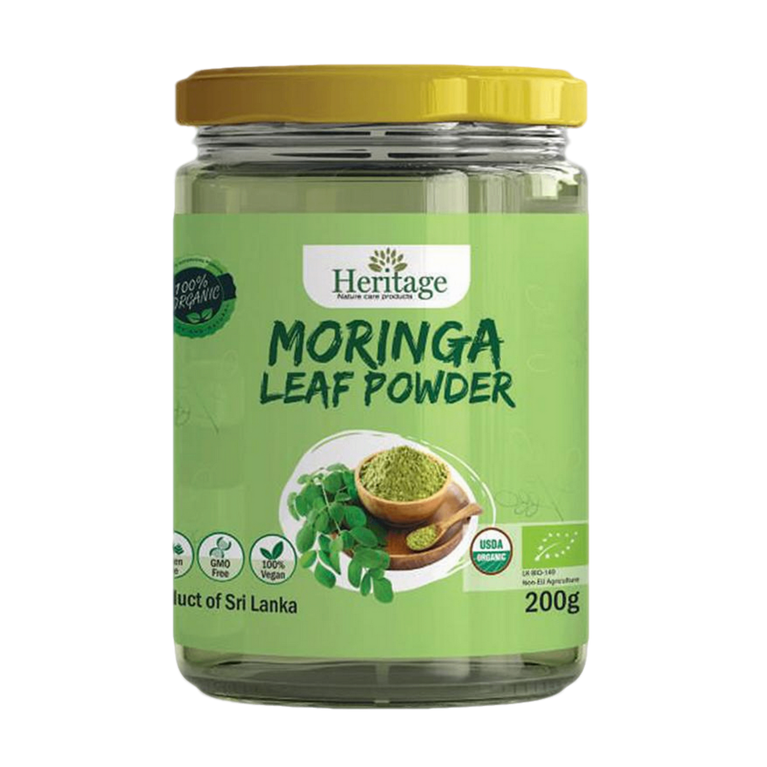 Heritage Organic Moringa Powder is a premium USDA-certified organic product crafted from 100% pure Moringa leaves. Moringa is a centuries old elixir with medicinal properties and health benefits. Native to India, this tree also grows across Asia and is packed with a variety of proteins, vitamins and minerals.